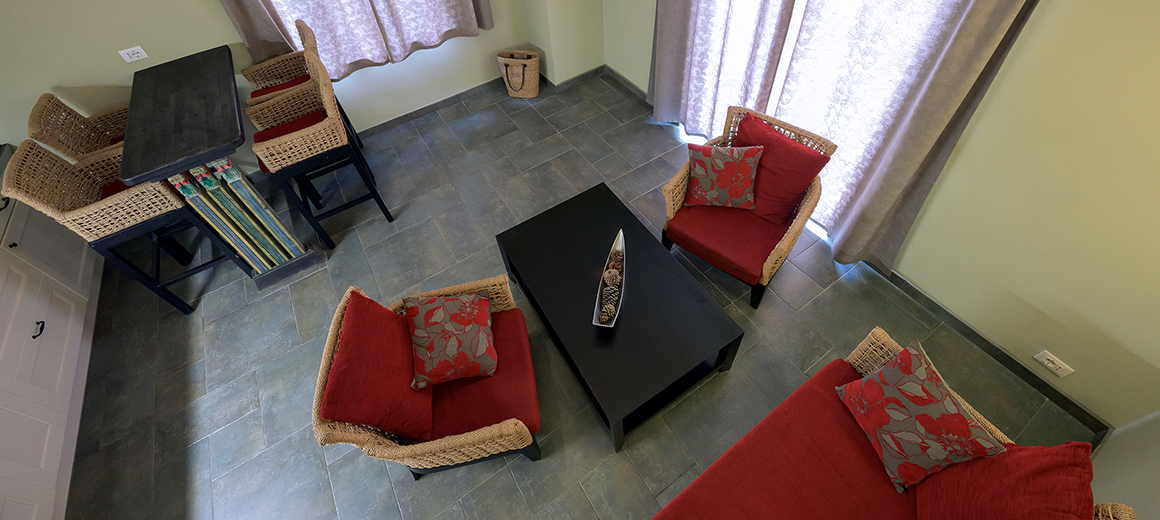 Dieses helle 45 qm Apartment verfügt über eine Terrasse mit Sonnenliegen und Esstisch. Über dem offenen Wohn-/Küchenbereich befindet sich ein Bett mit Schlafmöglichkeit für 2 weitere Personen.