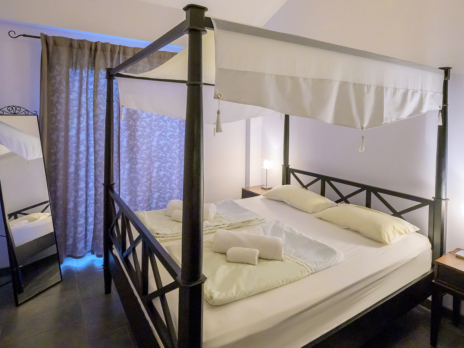 Schon beim Aufwachen, im romantischen Bett mit Baldachin, können Sie den einzigartigen Meerblick genießen. Starten Sie in den Tag mit einem Frühstück auf der Terrasse.