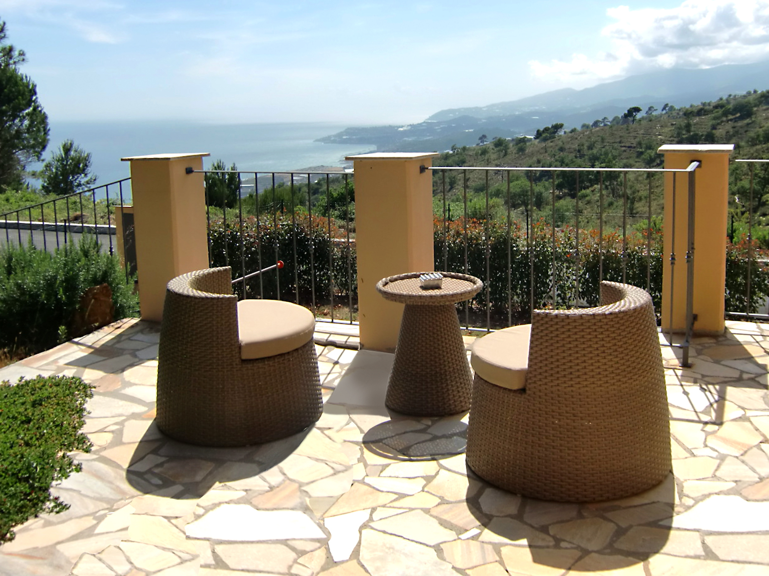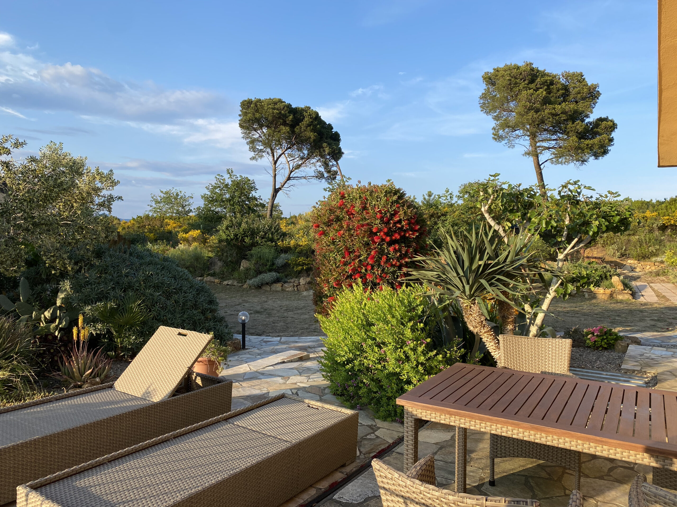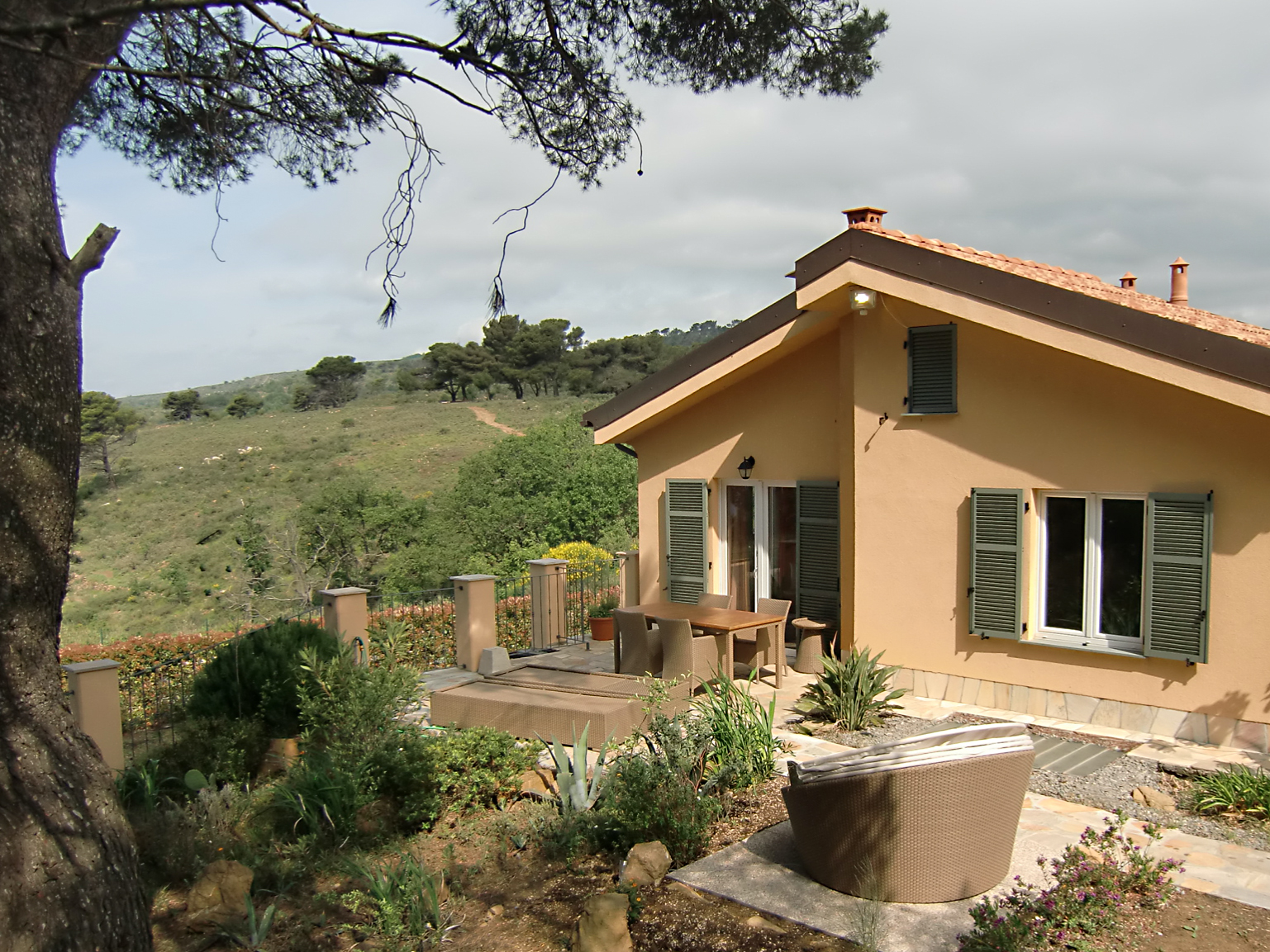Auf den komfortablen Liegen, bzw. der Sonnenmuschel ist Erholung garantiert! Wir reisten mit Hund und konnten direkt vom Haus lange Spaziergänge durch den endlosen Pinienwald unternehmen, die Aussicht von den unterschiedlichen Bergspitzen war einfach grandios!